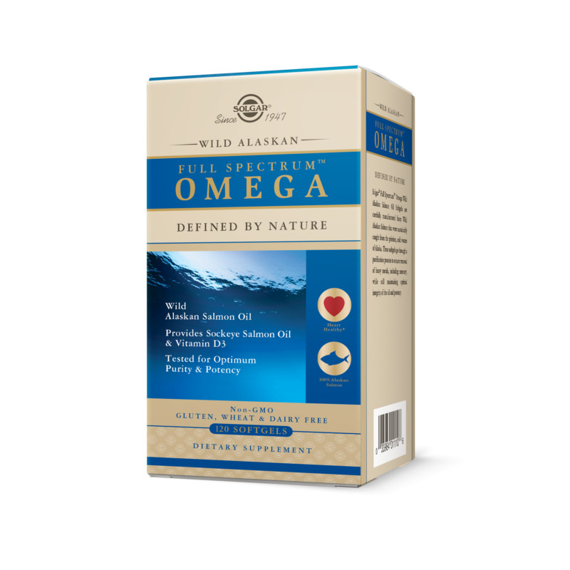 Full Spectrum Omega od Solgar je doplnok stravy s obsahom rybích olejov odvodených od v každom ohľade jedinečného druhu aljašského lososa - divokého lososa. Divoký aljašský losos je jedným z najbohatších a najlepších zdrojov nenasýtených omega mastných kyselín. Obsahuje Omega 3 kyseliny ako EPA, DHA a čo je veľmi dôležité, úmerne veľké množstvo Omega 3 kyseliny - DPA (kyselina dokozapentaénová).