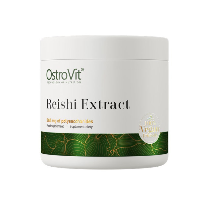OstroVit Reishi Mushroom Extract je doplnok stravy, ktorý je zdrojom extraktu z húb reishi štandardizovaného na 40 % polysacharidov. Ide o prípravok s jednoduchým zložením, dostupný vo forme prášku. Je to produkt vytvorený pre uvedomelých spotrebiteľov, ktorí chcú doplniť svoju dennú stravu o cenné zlúčeniny prírodného pôvodu.